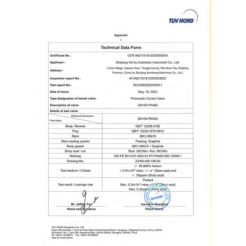 調(diào)節(jié)閥 微泄露證書 2